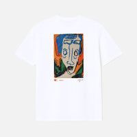 Volto means "face" in Italian. This series was born from the artist Gionatan Scali’s travels between Berlin and Turin in summer 2025, moments of escape, reflection, and searching for human connection. Using just twelve oil pastels, each face is drawn without plan, pure gesture, unfiltered response. Inspired by expressions seen on daily walks, fear, joy, apathy, and vulnerability. The Volti (Faces) series captures the soul behind a glance. In collaboration with Idioma Ltd., we chose to highlight face number 6. This t-shirt carries the story of expression, freedom, and the need to see and be seen.