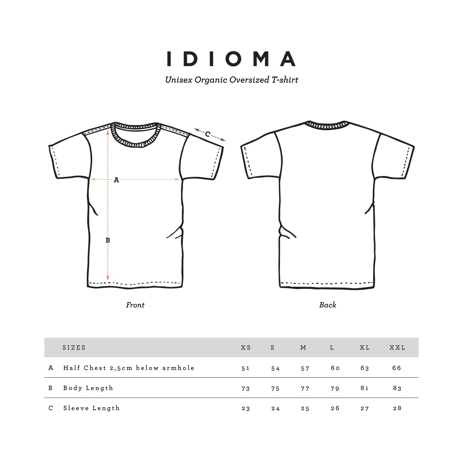 This t-shirt is oversized, a little longer in the body and sleeve. It's also a little heavier and more substantial than the usual tee. You may wish to buy a smaller size if you prefer things more fitted. If you're American buy your usual size or if you like things roomy go up a size.