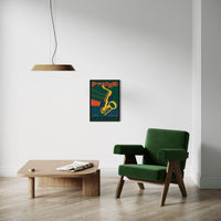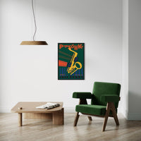 Inspired by the music of Polish Jazz Legends: Zbigniew Namysłowski and Krzysztof Komeda our Popisówka Print carries the sense of a bold demonstration, that moment when someone steps into the spotlight to deliver their very best. It’s about flair, mastery, and showing off hard-earned skills. This print captures that energy through the silhouette of a saxophone, evoking the intensity and flair of an epic Jazz solo.