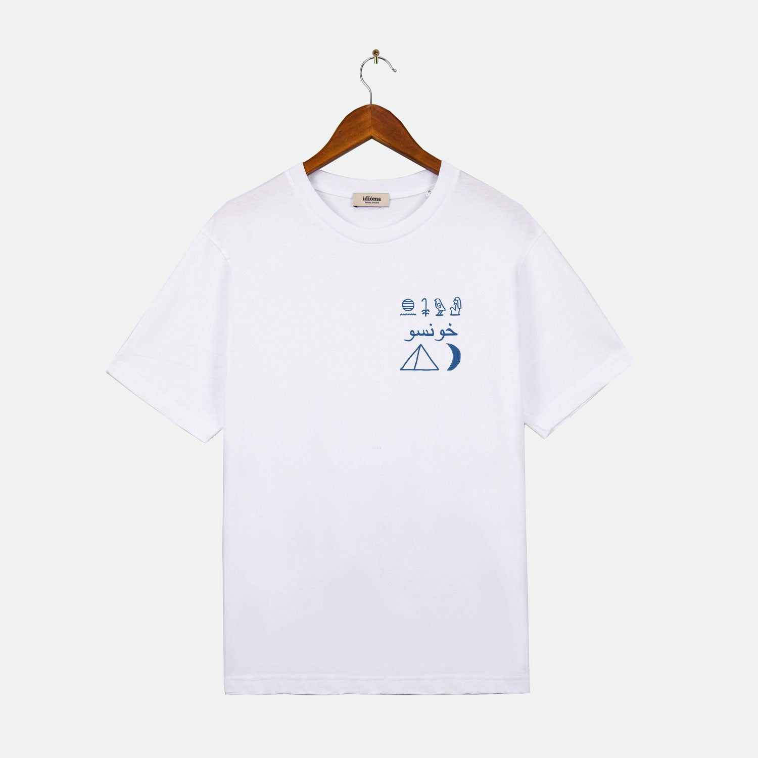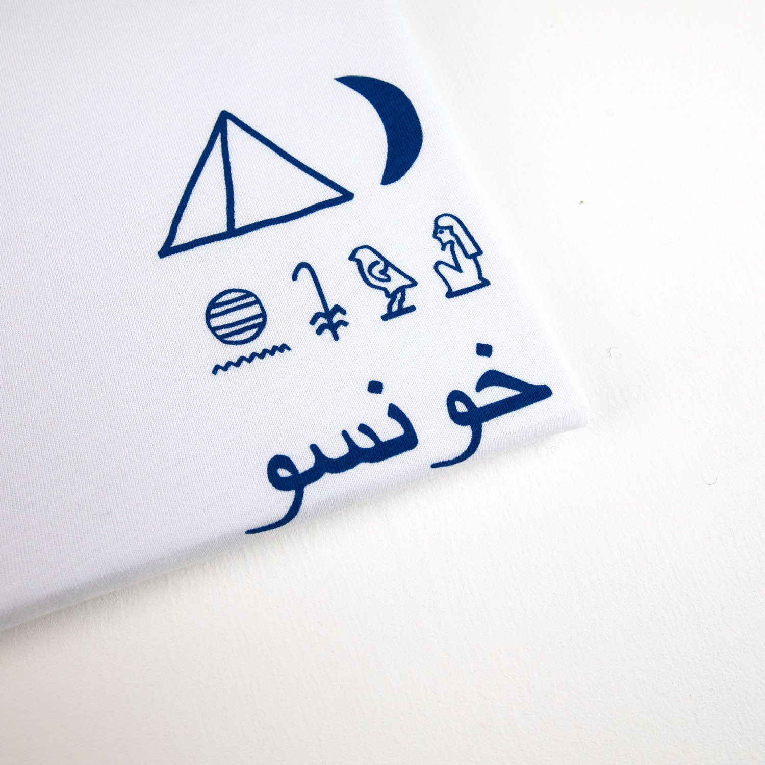 This design features the Arabic and hieroglyphics for Khonsu.