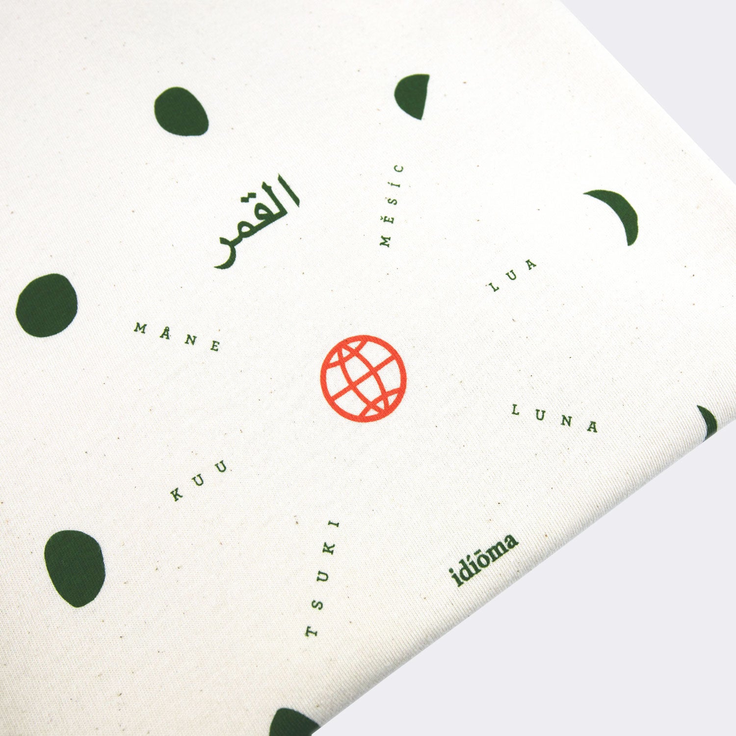 This t-shirt celebrates the 8 major phases of our moon and the beautiful translations of 'Moon' into Japanese, Portuguese, Czech, Finnish, Swedish, Italian and Spanish.