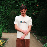 These tees are a little oversized. Buy your size if you're good with that. If you like things more fitted buy a size smaller.